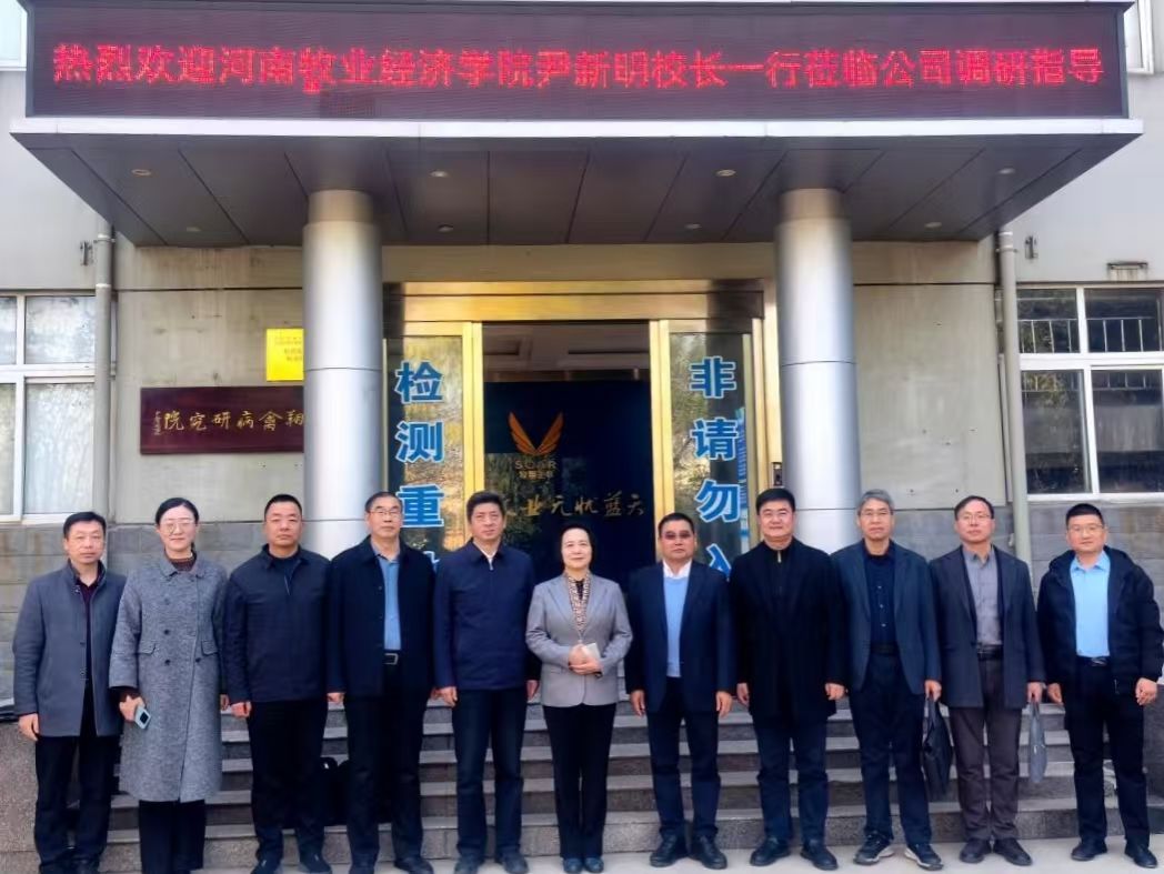 11月28日,我校校长尹新明、副校长岳彩军一行赴校友企业河南牧翔生物股份有限公司走访调研,洽谈校企合作。
