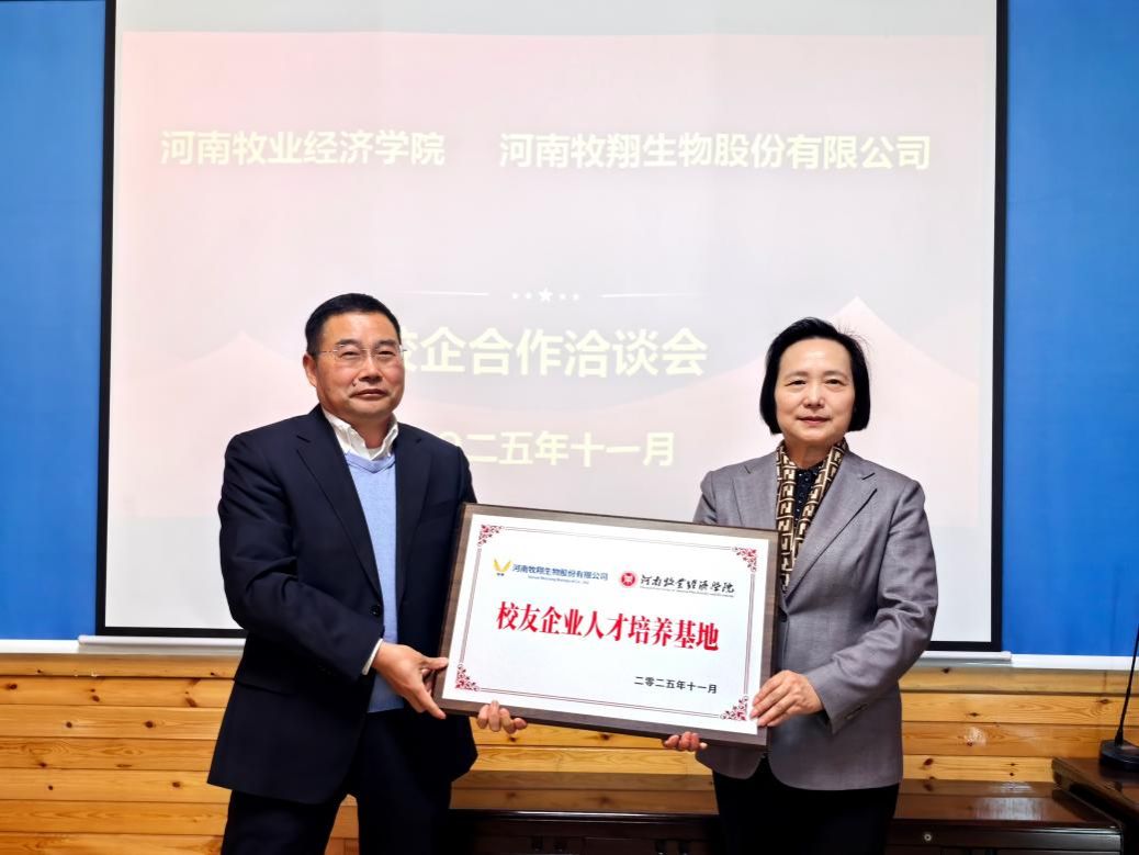 会上,校企双方举行了校企合作授牌仪式。尹新明代表学校授予企业“河南牧业经济学院校友企业家联盟理事单位”牌匾;郑宝振代表企业授予学校“校友企业人才培养基地”牌匾。校企双方就学科专业共建、科研项目联合攻关、学生实习就业合作、河南牧业经济学院动物保健行业校友企业家联盟筹建等议题展开深入交流。双方一致表示,将以校友企业家联盟为情感纽带,以人才培养基地为依托,创新人才培养模式,整合校企科研资源,联合攻克行业共性技术难题,最终实现“人才共育、科技共创、产业共兴”的共赢目标。
